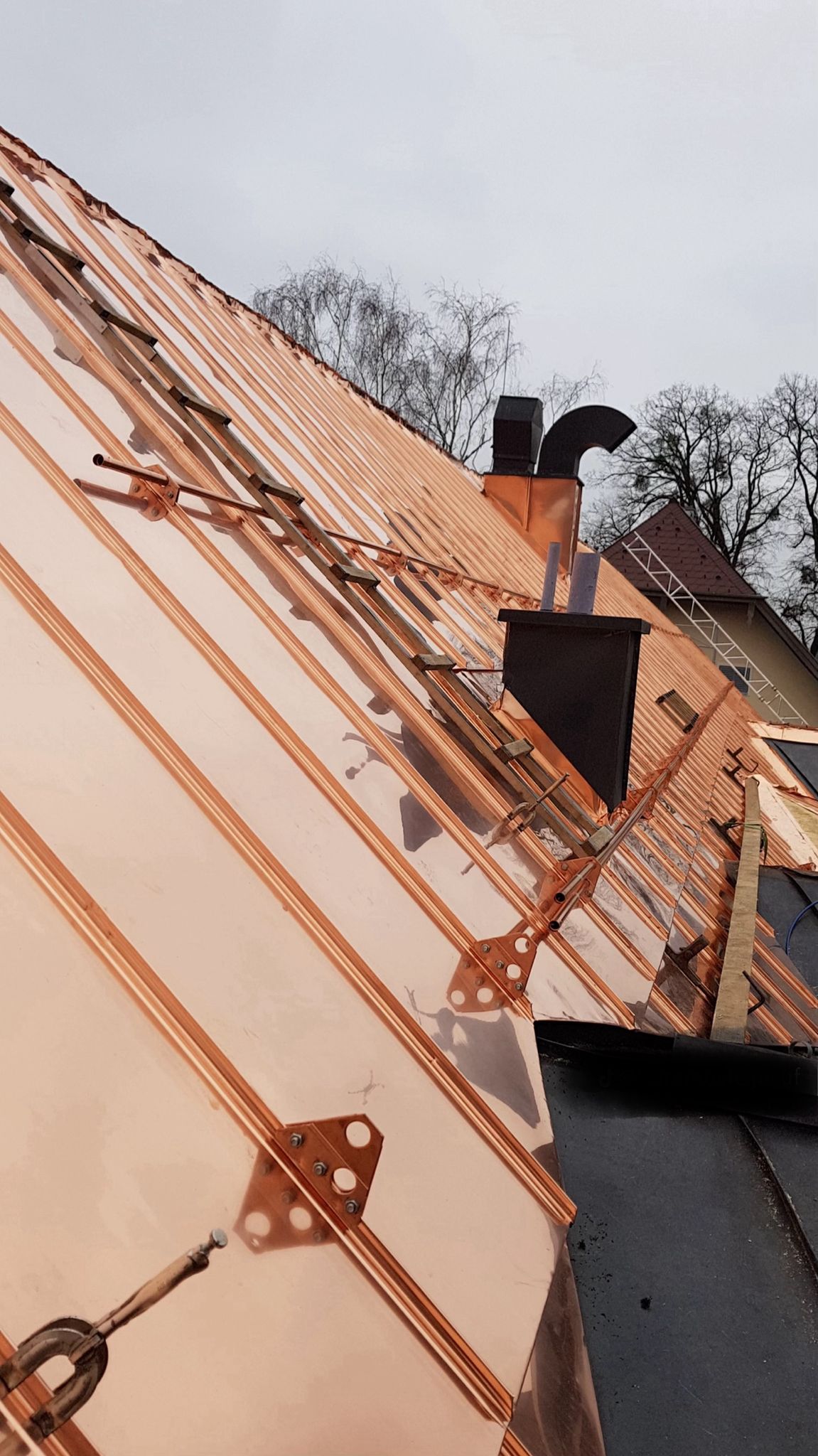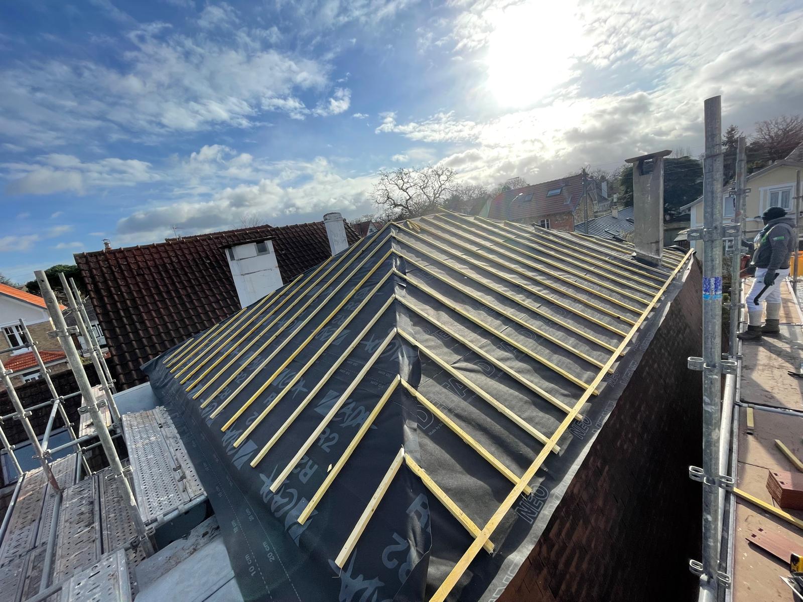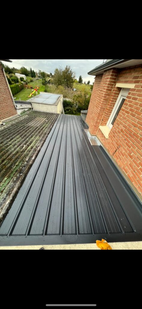 Nous assurons la rénovation complète des toitures en zinc, comprenant la dépose des éléments défectueux, le remplacement des bacs ou feuilles de zinc usés, la reprise des joints debout, des raccords et des points singuliers (rives, noues, faîtages). Chaque intervention est réalisée dans le respect des normes de pose afin de garantir une étanchéité parfaite.