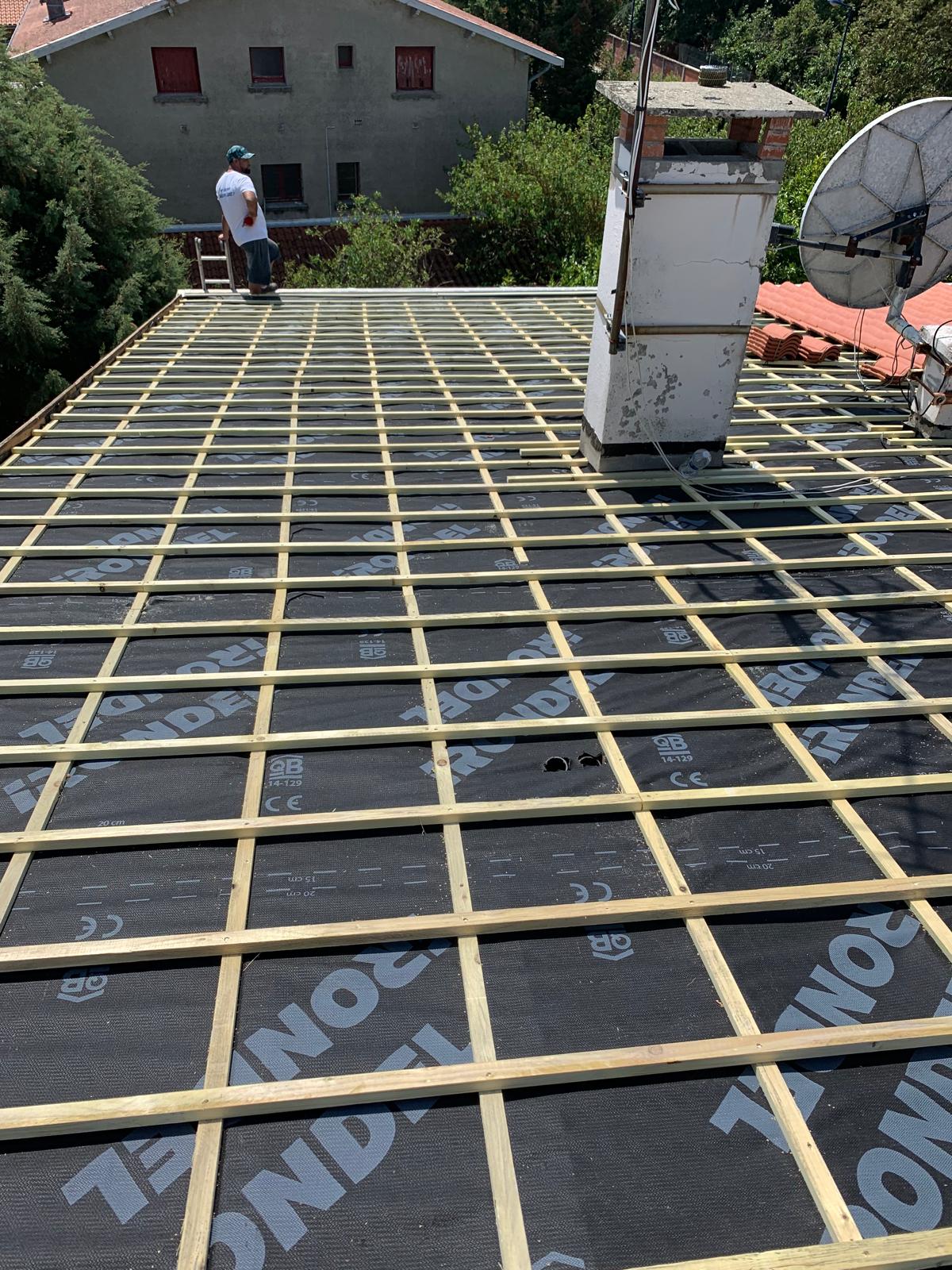Nous assurons l’isolation du toit et des combles, par la pose d’isolants performants (laine minérale, panneaux rigides ou isolant mince réfléchissant) directement sous la couverture. Cette mise en œuvre garantit une continuité de l’isolation, limite les ponts thermiques, améliore l’étanchéité à l’air et optimise la performance énergétique globale du bâtiment, conformément aux normes en vigueur.